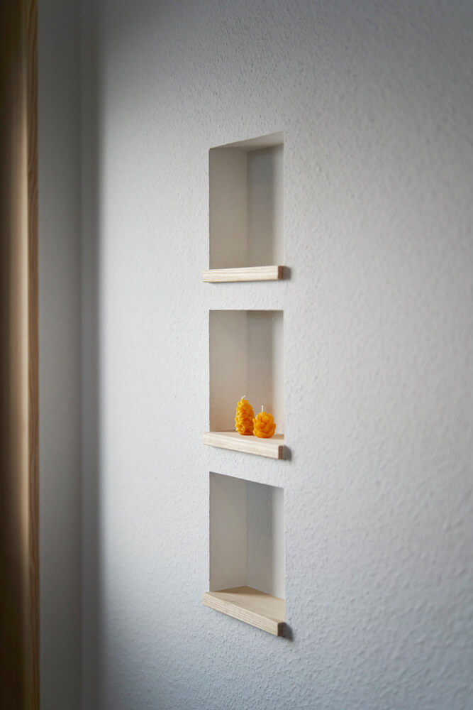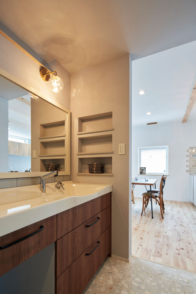 玄関横の壁面にはニッチを設け、遊び心のあるディスプレイスペースに