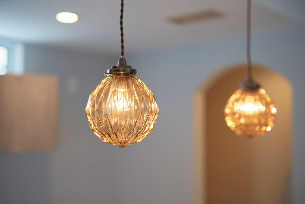 無垢材の床と白壁・白天井のナチュラルテイストの室内に、住む人の個性と温もりを添えているのが、奥さんが設置場所に合わせて一つひとつ選んだ照明の数々。電球色の灯りの広がりが昼とは違うやわらかなニュアンスを演出